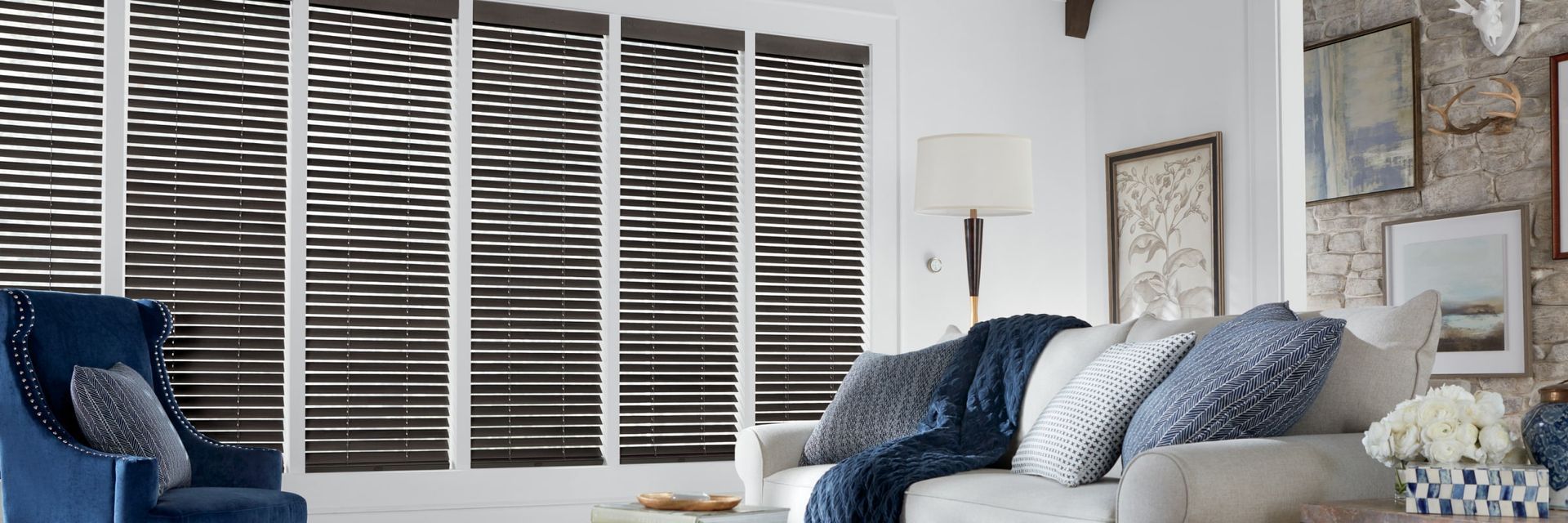 Traditional and minimalist, the Hunter Douglas Vertical Solutions® Vertical Blinds are clean and simple, perfect for any large glass fixtures. Customize these blinds to fit your needs; choose from various operating systems like the traditional wand operation, the hassle-free chain-and-cord style, or a combination cord-and-wand operation. Then pick material from our selection of vinyl and fabrics in an array of patterns and colors. You’ll love these clean, minimalist treatments that let your guests, art, and furniture be the full focus of your space.